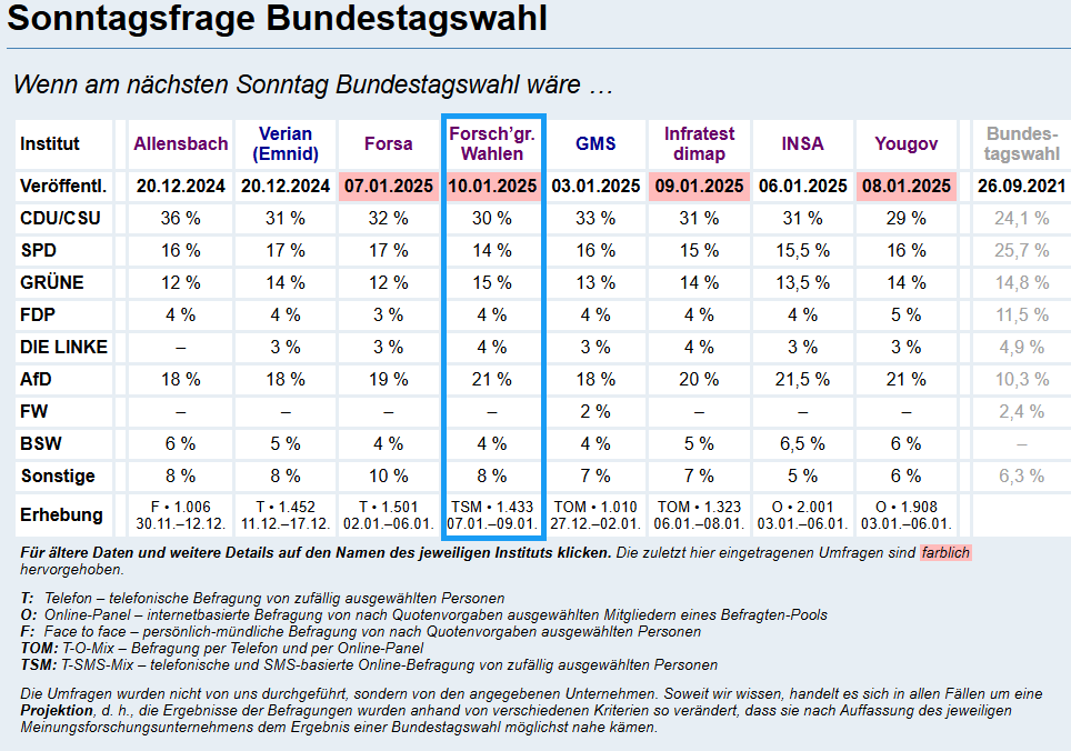 Quelle/aktuelle Umfragen & Verlauf FG Wahlen