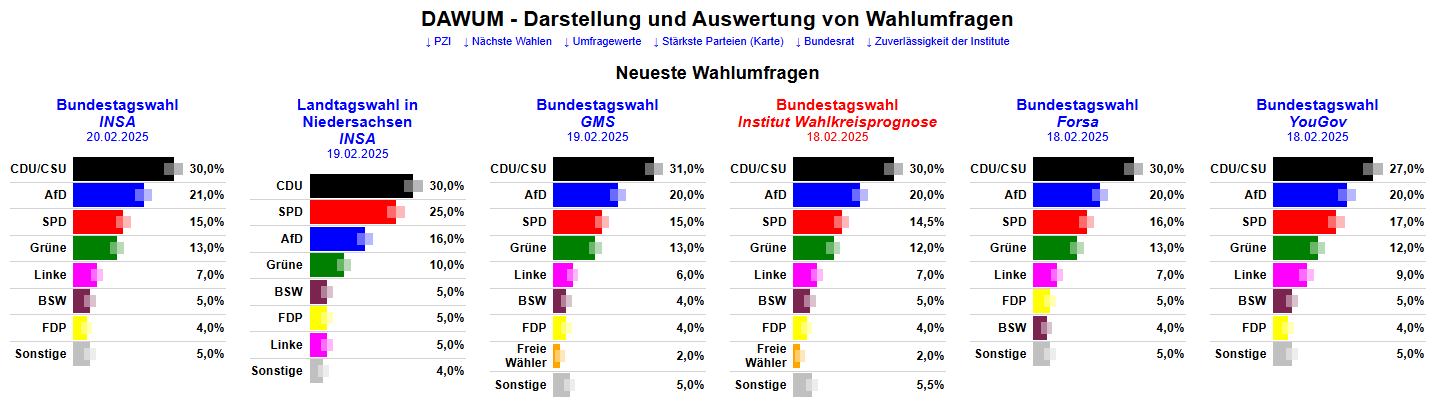 US-Umfrage: Union 27 Prozent – AfD 25 – SPD 15 – Grüne 13 – BSW sechs – FDP wie Linke fünf