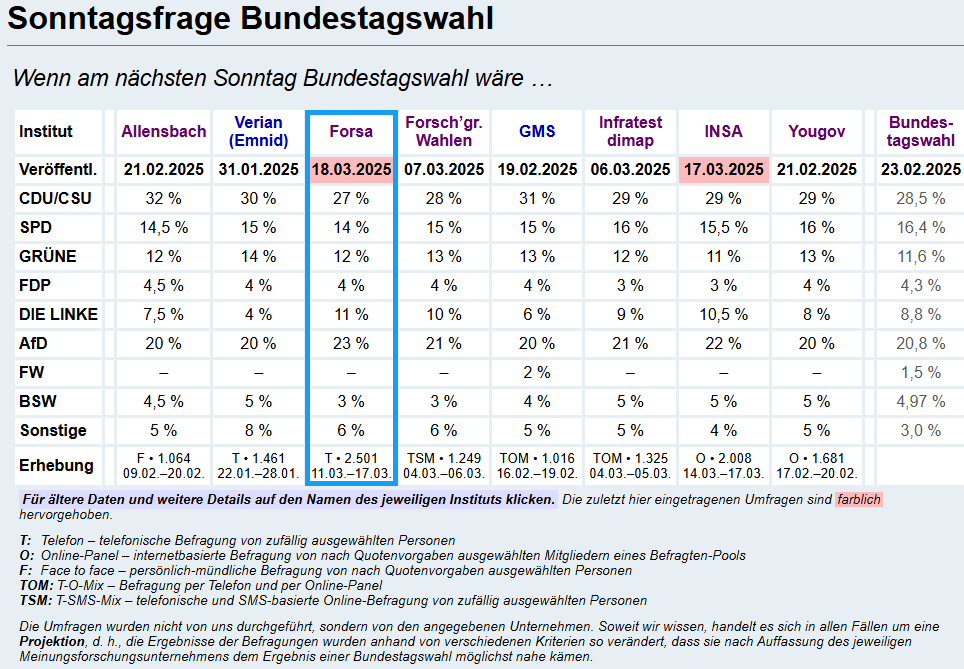 Aktuelle FORSA – Umfrage vom 18.3.2025