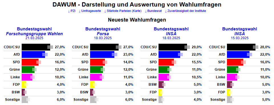 Vergrößern – Quelle/Umfragen aktuell & FG Wahlen Bundestag aktuell, FORSA Bundestag aktuell, INSA Bundestag Spezial III, INSA Bundestag Spezial II