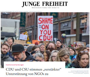 Schwarz-Rot wird die üppige finanzielle Unterstützung von NGOs „fortsetzen“ – und zwar „verstärkt“. Darauf haben sich SPD und Union bereits vor Abschluß der Koalitionsverhandlungen geeinigt.