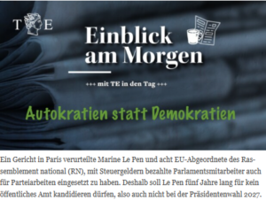 Tichys Einblick am Morgen 1.4.2025: Der Ausschluss von Le Pen ein Rohrkrepierer?