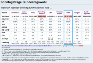 Vergrößerung – Quelle/Umfragen aktuell INSA Bundestag Spezial II & Forsa Bundestag Spezial Allensbach Bundestag Spezial & INSA Bundestag Spezial I