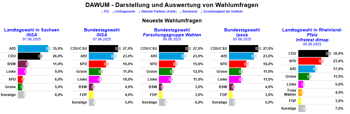 Vergrößerung – Quelle/Umfragen aktuell INSA LT Sachsen Spezial & INSA Bundestag Spezial & FG Wahlen Bundestag Spezial & IPSOS Bundestag Spezial & Infratest-dimap LT Rheinland-Pfalz