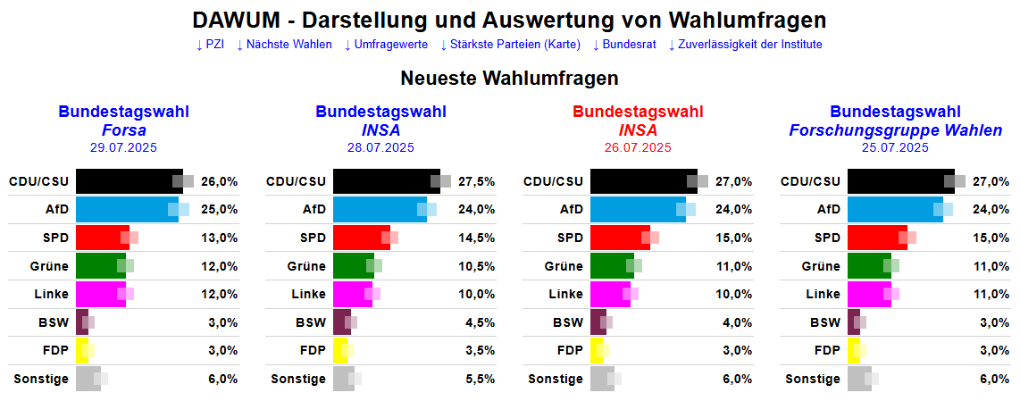 Der Tichy-Umfragedurchschnitt 16. Juli 2025