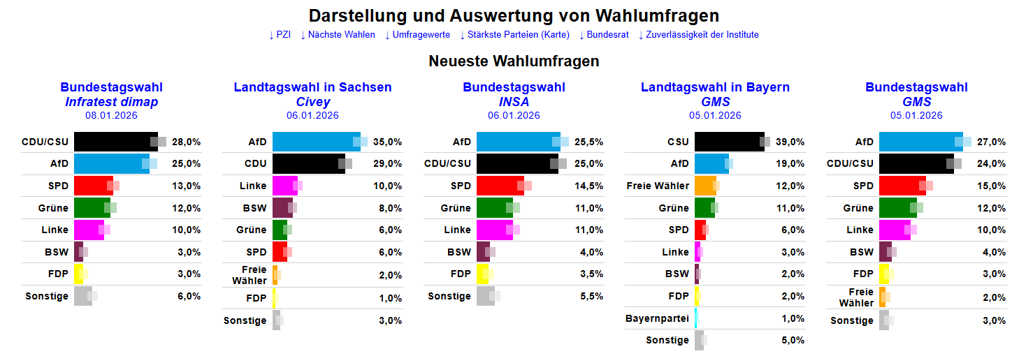Aktuelle Wahlumfragen & ab 20.12.2024 kumuliert