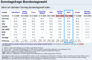 Aktuelle Wahlumfragen & ab 20.12.2024 kumuliert