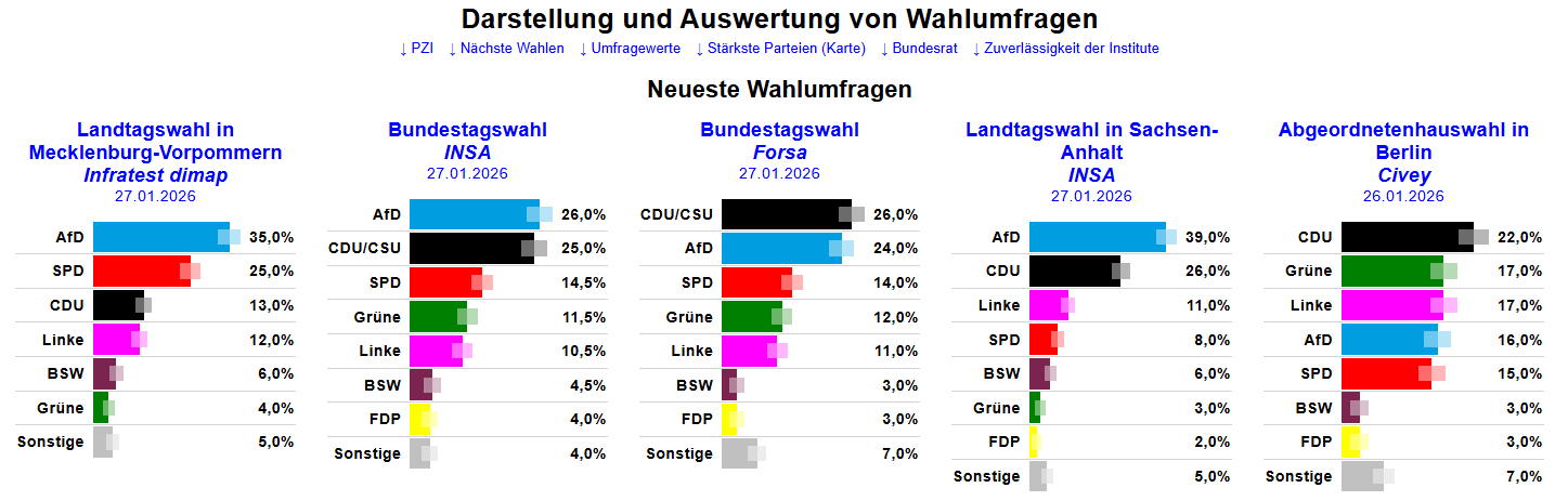 Vergrößerung – Quelle/Umfragen aktuell: Infratest dimap LT Mecklenburg-Vorpommern Spezial & INSA Bundestag Spezial & Forsa Bundestag Spezial & INSA LT Sachsen-Anhalt Spezial & Civey AGH Berlin Spezial