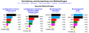 Vergrößerung – Quelle/Umfragen aktuell: Infratest dimap LT Hessen & Infratest dimap LT NRW & Allensbach Bundestag Spezial & INSA Bundestag Spezial