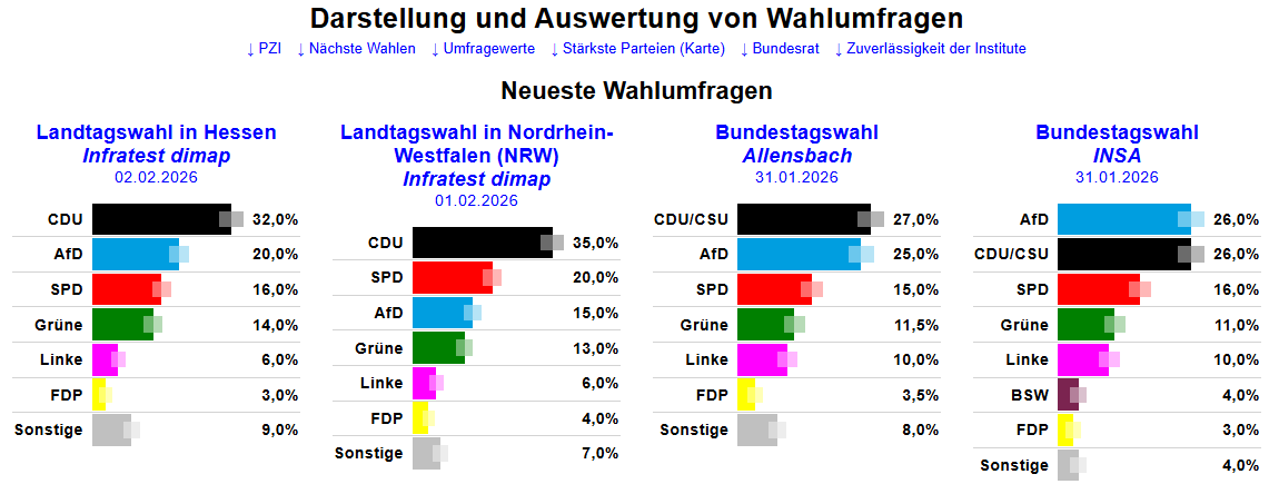 Vergrößerung – Quelle/Umfragen aktuell: Infratest dimap LT Hessen & Infratest dimap LT NRW & Allensbach Bundestag Spezial & INSA Bundestag Spezial
