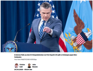 Teheran/Washington – Hammer-Bericht aus dem Pentagon! Der Nachrichtenagentur Reuters liegen interne Mails aus dem Pentagon vor, in denen die USA konkrete Strafmaßnahmen gegen NATO-Partner prüfen, die im Iran-Krieg nicht ausreichend unterstützen. Diskutiert wird unter anderem ein Ausschluss Spaniens aus der Allianz. Auch Großbritannien gerät ins Visier: Die US-Unterstützung für den Falkland-Anspruch könnte reduziert werden, heißt es. Zudem sollen „schwierige“ Länder gezielt von wichtigen und prestigeträchtigen NATO-Posten ausgeschlossen werden.
