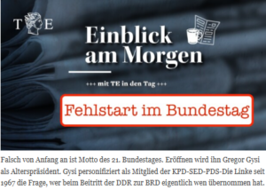 Kommunist Gysi eröffnet den 21. Bundestag. CDU-Frau Klöckner kann nur Bundestagspräsidentin werden, wenn sie den Rotgrünroten gehorcht. Falsch von Anfang an ist Motto des 21. Bundestages und der künftigen Koalition: Rampel. […]