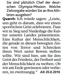 „Ich mache mir gerade Sorgen um unsere Demokratie. Und ich glaube ehrlich gesagt, es gibt einen inneren Zusammenhang zwischen dem christlichen Fundament und einer funktionierenden Demokratie. Ich glaube, es ist kein Zufall, dass in den allermeisten Ländern, wo Demokratien funktionieren, eine christliche Kultur vorausgegangen ist, eine Kultur, die die Personenwürde achtet, die die Menschenwürde, die Freiheit der Menschen achtet, die auf Diskurs aus ist und aufbaut.