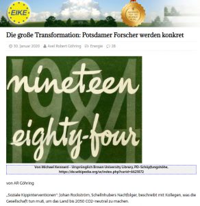 John Schellnhuber beschrieb bereits 2011 in einer Schrift mit dem Titel Welt im Wandel – Gesellschaftsvertrag für eine Große Transformation, wie er und seine Mitstreiter unter dem Deckmantel des „Klimaschutzes“ das Land und seine Ressourcen unter die Kontrolle einer schein-technokratischen Elite bekommen wollen. Angela Merkel griff das Schlagwort ihres „Lyssenko“ (Zitat Michael Klonovsky) in Davos erstaunlich offen auf und verkündete unter Applaus anwesender Elitenvertreter, daß unsere Gesellschaften umgebaut werden müssten. Man merkt, die planen was. Etwas konkreter wird eine Arbeitsgruppe des Potsdam-Instituts für Klimafolgenforschung PIK in Proceedings of the National Academy of Science, PNAS, einem renommierten Wissenschaftsmagazin.