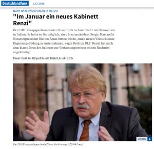 Hören oder lesen Sie, was Elmar Brok, die deutsche Speerspitze in der EU neben Martin Schulz, heute morgen im Deutschlandfunk gesagt hat.