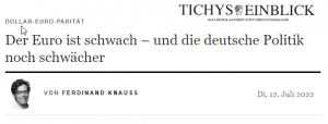 Die zugleich mit der Energiekrise kommende Euro-Schwäche …