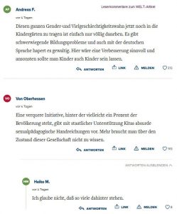 Hier die am meisten geherzten Leserkommentare zum WELT – Artikel: