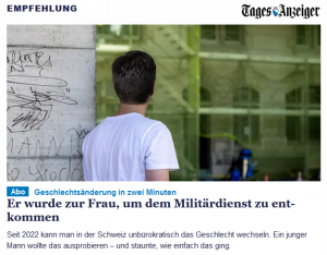 … Max liess sich aber nicht zur Frau umschreiben, weil er sich tatsächlich als Frau fühlte. Der Grund ist viel profaner: Er wollte nicht in den Militärdienst.