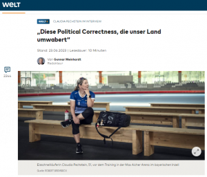 … im Rahmen der medialen Kritik (aufzurufen bei Youtube & Google) stellte das Interview mit Frau Pechstein dar, dass der Redakteur Gunnar Meinhardt am 23.6.2023 auf WELTonline führte.