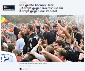 Nein, es wird sofort das völkisch-nationale Verunglimpfungspaket, es wird die NSDAP-Keule ausgepackt. Da ist man direkt zur prime-time im Fernsehen und anderen Medien. Das versteht der einfache Bürger und man gehört zu den Guten.