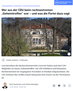Gut, zwei Tage später fand das Geheimtreffen von Potsdam statt. Da ist es praktisch, dem Bürger noch mal die „Millionenfache Abschiebungsgeschichte“ zu servieren. Dieses NARRativ lesen Sie im Zitat oben im rechtsbündigen Text. Weswegen NARRativ?