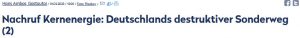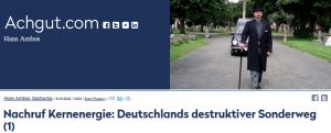 *Weil das Thema zeitgeschichtlich außerordentlich wichtig für die Fragestellung „Zukunft Deutschlands, Klima, Energieversorgung u.v.m. “ ist, zitieren wir den Text als PDF. Verweise und Kommentare der Leserschaft lesen Sie, wenn Sie DEUTSCHE WIRTSCHAFTSNACHRICHTEN testen/abonnieren. Wir empfehlen DEUTSCHE WIRTSCHAFTSNACHRICHTEN ausdrücklich: 30 Tage für 1,99 € testen. Achtung: Die Schnupperangebote können sich ändern!