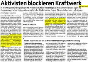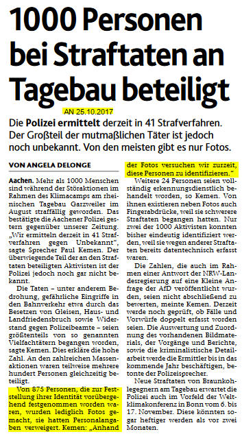 „Sind die Demonstranten, die sich so verhalten haben, Kriminelle? Sind sie Gewalttäter? Sind sie Krawalltouristen? Sie haben im Rahmen ihres Protestes Gesetze gebrochen. Ihr Ziel war es, den Betrieb in den Tagebauen zumindest kurzzeitig lahmzulegen, um ein Zeichen zu setzen.“ Quelle: Hier klicken
