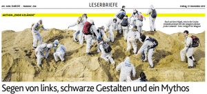 Dass Journalisten der AN immer noch von „Aktivisten“ sprechen und das´Handelnan sich` dieser Menschen z. B. auf der Leserbriefseite vom 25.11.2017 explizit als „gut“ hervorgehoben wird, ist beschämend. Die AN machen sich auf diese Weise praktisch mit der kruden Meinung eines Lesers gemein.