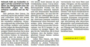 Ich möchte erwähnen, dass es dem Haus- und Hofblatt von Aktivisten jeglicher Couleur hoch anzurechnen ist, dass es die wahrscheinlich in großer Zahl eingetroffenen Leserbriefe zumindest teilweise veröffentlicht.