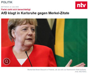 […] Wegen der Äußerungen von Bundeskanzlerin Angela Merkel zur Ministerpräsidentenwahl in Thüringen hat die AfD nach eigenen Angaben zwei Organklagen beim Bundesverfassungsgericht eingereicht. Damit verbunden seien Eilanträge, die sich gegen „fortdauernde Rechtsverletzungen von Regierung und Kanzlerin“ richteten. Hintergrund sind Äußerungen Merkels auf einer Südafrikareise. Die Kanzlerin hatte die Wahl eines FDP-Ministerpräsidenten mit den Stimmen von AfD und CDU als „unverzeihlich“ kritisiert und gefordert, dies rückgängig zu machen.