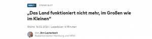 *Weil das Thema zeitgeschichtlich außerordentlich wichtig für die Fragestellung „Zukunft Deutschlands, AfD, Kampf gegen rechts, Wirtschaft, Ampel“ u.v.m. “ ist, zitieren wir den Text als PDF. Verweise und alle Kommentare der Leserschaft lesen Sie, wenn Sie die NZZtesten/abonnieren. Wir empfehlen die NZZ ausdrücklich.