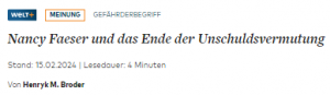 *Weil das Thema zeitgeschichtlich außerordentlich wichtig für die Fragestellung „Zukunft Deutschlands, Rechtsstaat,“ u.v.m. “ ist, zitieren wir den Text als PDF und einen Teil der Leserkommentare ebenfalls als PDF. Verweise und alle Kommentare der Leserschaft lesen Sie, wenn Sie WELTplus testen/abonnieren. Wir empfehlen WELTplus ausdrücklich: 30 Tage für 1 € testen. Achtung: Die Schnupperangebote können sich ändern!