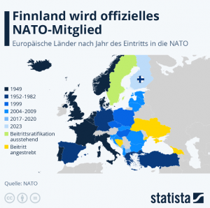 Im Jahr 2001 hielt Russlands nunmehriger Präsident Putin eine vielbeachtete und mit stehenden Ovationen honorierte Rede, die den Willen zu einer guten, aber gleichberechtigten Zusammenarbeit belegt. Und das, obwohl der NATO-Erweiterungsprozess in Richtung Russland bereits begonnen hatte. Unabhänig von irgendwelchen gegebenen oder nicht gegebenen Versprechen des Westens ist das meines Erachtens trotz Russland-NATO-Vertrag ein erster Akt der Aggression gegen ein Russland, welches von einem Mann ´geführt` wurde, der nur mit entsprechend hohem Alkoholspiegel leben konnte, und deshalb nicht Herr seines politischen Geistes war. Doch damit nicht genug. 2004 geht es weiter. Und 2009, und 2017, und 2020 plus anstehende Kandidaten und Interessenten.