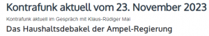 Dass darunter vieles sein wird, was den jetzigen Rot-Grünen und sonst wem nicht gefällt, ist wahrscheinlich. Aber genau das ist der Sinn eines Regierungswechsels, lieber Herr Laschet. Genau das nennt man Demokratie. Wenn denn verfassungswidrige Vorgänge vermutet werden, kann die Opposition rechtsstaatlich dagegen vorgehen. So wie die jetzige Bundesregierung, die angeblich Guten, erfahren musste, funktioniert das recht gut. Die Verkehrswende musste wegen der daraus resultierenden Verunmöglichung weiterer Schuldenaufnahmen von einem Tag auf den anderen abgeblasen werden. Mit dem aktuellen Wegfall der Förderung von E-Bussen und E-Nutzfahrzeugen ist m. E. nicht nur die Verkehrswende, sondern die Energiewende komplett vom Tisch. Die Zulassungszahlen für E-Autos fallen bereits im Vergleich zum Vorjahr, der Offshore-Windkraftausbau ruckelt, onshore ist auch nichts im Plan. Nur Photovoltaik wächst, was über Mittag regelmäßige Übererzeugung mit Niedrigst- oder Negativpreisen zur Folge haben wird, weil viel zu viel Strom produziert werden wird.