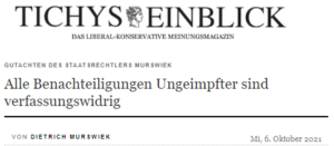 Insofern teile ich nicht die Einschätzung, eine Impfpflicht erweise sich als milderes Mittel verglichen mit einem Lockdown bzw. einer Endlosschleife von Lockdowns. Zunächst sollten dabei nicht Äpfel mit Birnen verglichen werden: Zum Schutz des Gesundheitssystems sind in erster Linie Maßnahmen zum Schutz derjenigen gerechtfertigt, die in besonderer Weise durch das Corona-Virus gefährdet sind. Verglichen werden müsste also ein Lockdown des nicht geimpften Teils dieser Personengruppe mit einer für sie geltenden Impfpflicht. Darüber hinaus müsste der Vergleich sauber vollzogen werden.