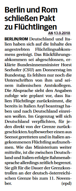 Ein Flüchtling zurück, dafür einer rein, natürlich mit Familiennachzug plus Dauer des Abkommens bis zum 11.11.2018 plus die zusätzlichen Forderungen Herrn Salvinis.