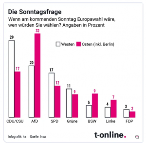 US-Umfrage: Union 27 Prozent – AfD 25 – SPD 15 – Grüne 13 – BSW sechs – FDP wie Linke fünf