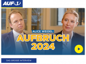 In diesem Vorweihnachts-Interview im Bundestag spricht Alice Weidel Klartext: Zur Massenmigration, zum politischen Werkzeug Verfassungsschutz, zum Kampf gegen das deutsche Volk, zur Enteignung und zur Corona-Inszenierung. Emotional wird die AfD-Chefin, als sie von Stefan Magnet (AUF1) auf den Deep State angesprochen wird. ….