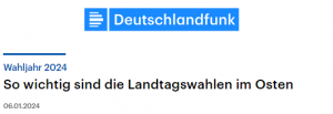 2024 ist ein wichtiges Wahljahr. In den USA wird ein neuer Präsident gewählt. Auch in zahlreichen anderen Staaten stehen Wahlen an – und dann ist da noch die Europawahl im Juni. In Deutschland finden in diesem Jahr außerdem in der Hälfte der 16 Bundesländer Kommunalwahlen statt. Hinzu kommt die Teil-Wiederholung der Bundestagswahl in Berlin. Politisch besonders im Fokus aber stehen drei Landtagswahlen in Ostdeutschland.