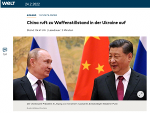 Russland & Ukraine & China aktuell: Aufruf zum Waffenstillstand …