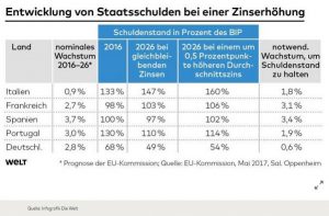 „Die Wirtschaft in der Euro-Zone mag keine weiteren monetären Zuwendungen nötig haben, weil sie gut läuft und sich auch die Inflation in Richtung des Ziels von zwei Prozent bewegt. Doch einige Staaten können sich wegen der hohen Altlasten keine höheren Zinsen leisten.“