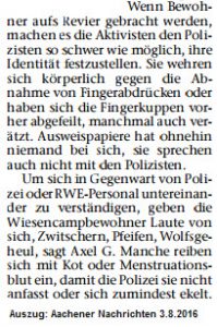 „[…] ist aber auch Ausdruck eines Lernprozesses. Denn die AfD musste erkennen, dass ihr reine Parlamentsarbeit wenig nutzt. Deutlich wird das in Brandenburg, wo Partei-Vize Gauland die Fraktion führt. Zwar will auch er über den Landtag hinaus wirken. Er sagt, ´dass wir uns nicht an die Abgeordneten im Landtag richten, sondern an die Bürger des Landes, um deren Fragen und Anliegen zu vertreten.` Doch der Versuch dies mit parlamentarischen Mitteln zubewerkstelligen, brachte wenig. […] Ins´ s Leere laufen lassen die anderen die AfD mithilfe eines Tricks. […] Der Trick geht so, dass AfD-Anträge, die den anderen als öffentlichkeitswirksam erscheinen, in eigene Anträge leicht abgewandelt übernommen werden, so dass man nicht mit den Rechten stimmen muss. […]