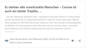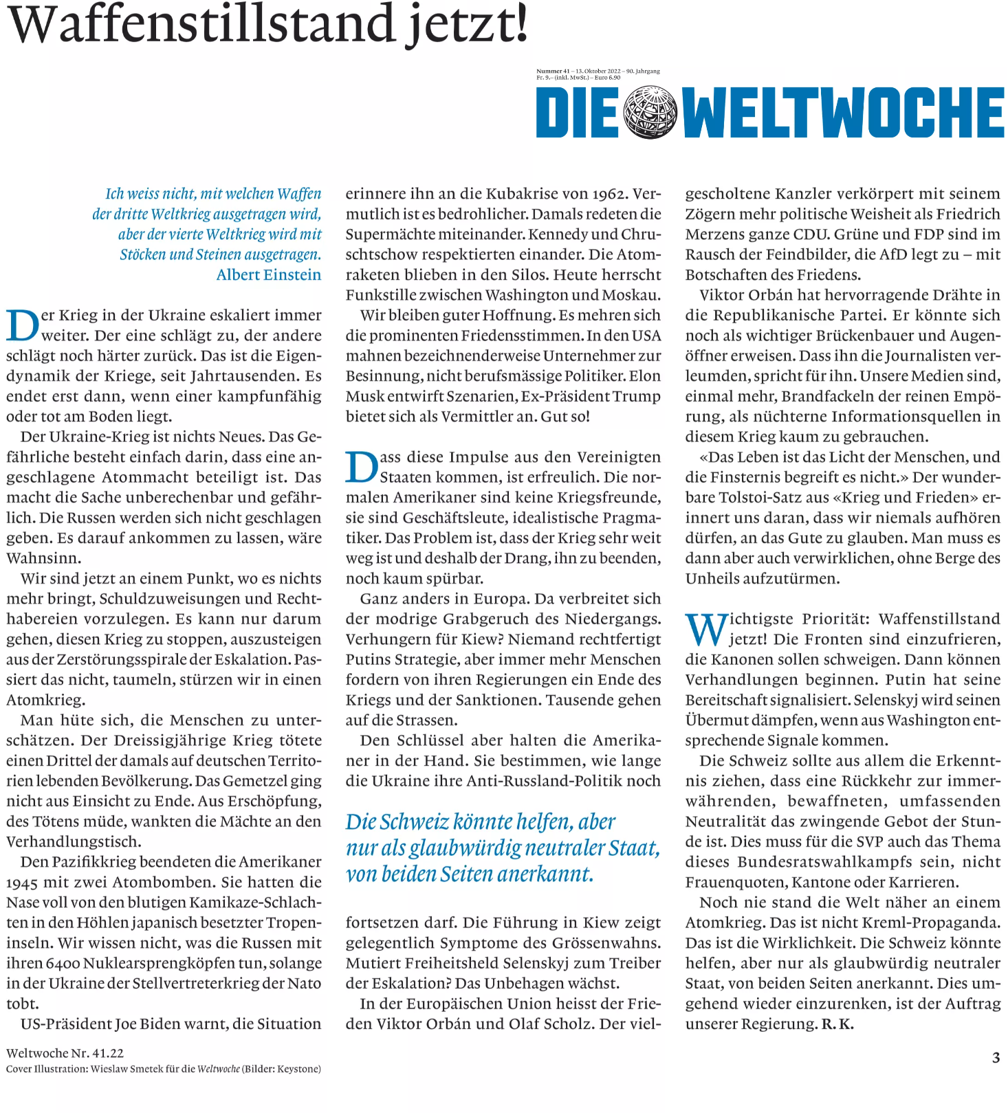 Wir empfehlen die Schweizerische WELTWOCHE ausdrücklich: