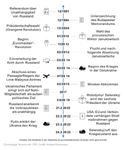 Die nachfolgende Zeitleiste gibt einen Überblick über die Geschichte der Ukraine von der Unabhängigkeit des Landes 1991 bis zum Kriegsausbruch 2022.