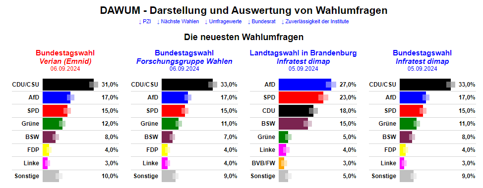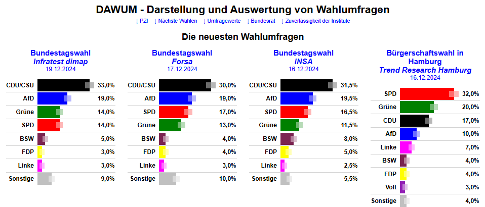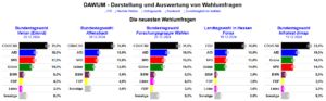 Vergrößern & Quelle/aktuelle Umfragen: VERIAN (emnid)Bundestag Spezial, Allensbach Bundestag Spezial, FG WAHLEN Bundestag Spezial, FORSA Hessen Spezial, INFRATEST dimap Bundestag Spezial